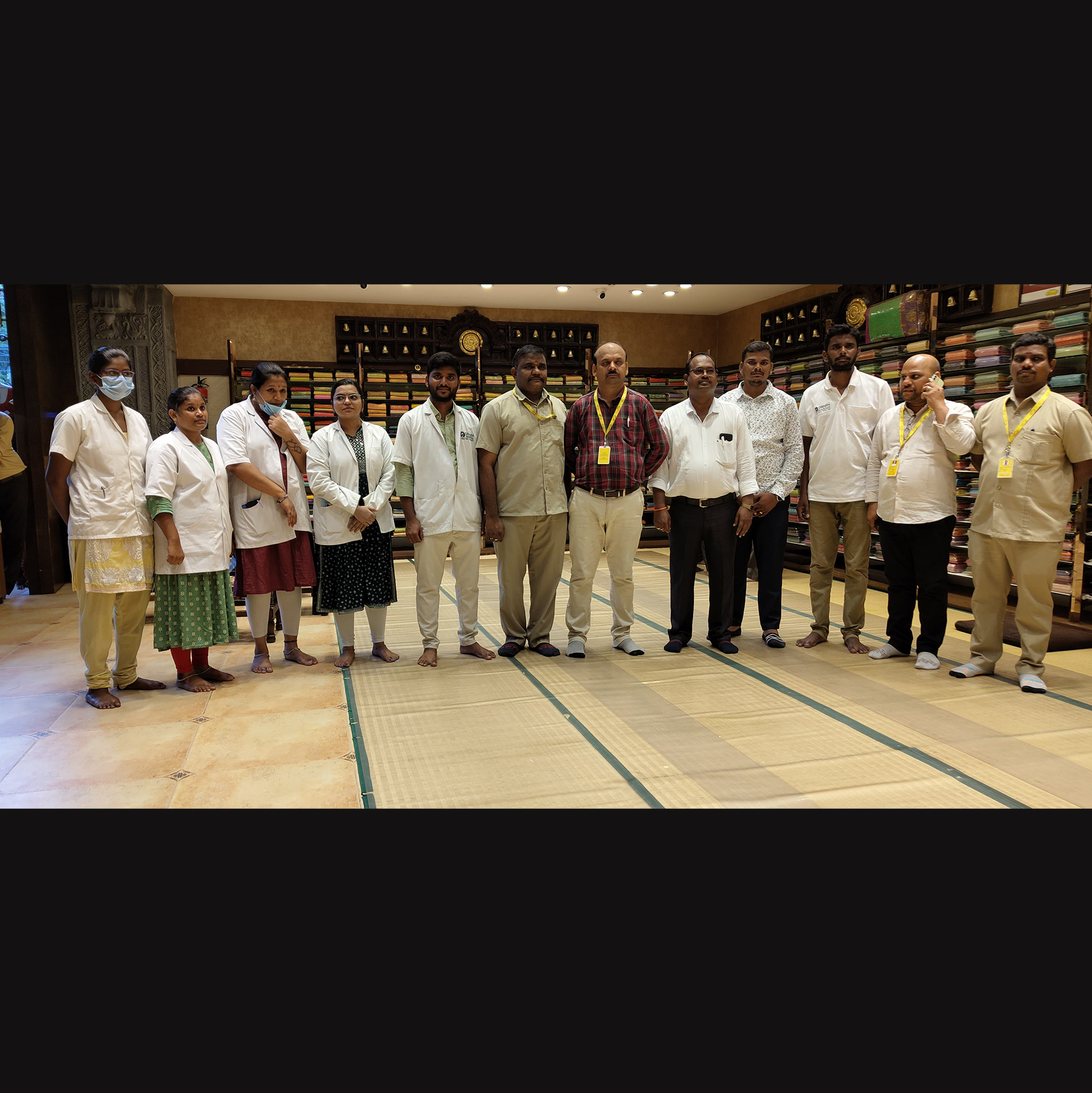 Today i.e.,11th May' 24 (Saturday) Dhruthi Clinic conducted Free Medical Camp at kanchipuram Varamahalakshmi Silk Showroom lakshmipuram, Guntur. In this camp Dental screening,Weight, BP, RBS, CBP,Blood grouping has been examined to all the Staff Members