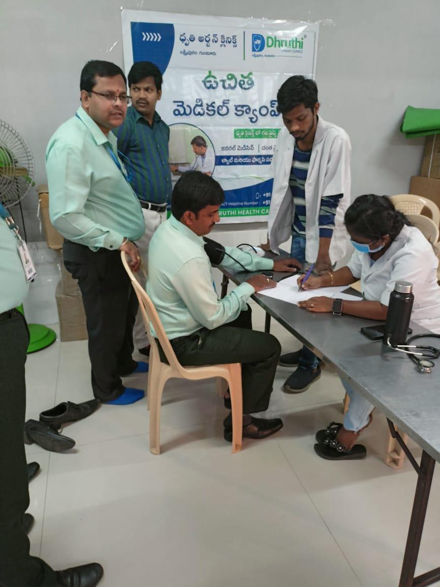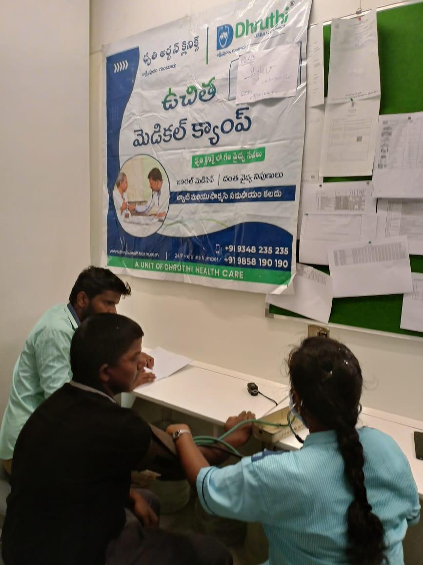 Today i.e.,3rd April' 24 (Wednesday) Dhruthi Clinics conducted Free Medical Camp at StyleUp Lakshmipuram, Guntur. In this camp Weight, BP, RBS, CBP has been examined to all the Staff Members.