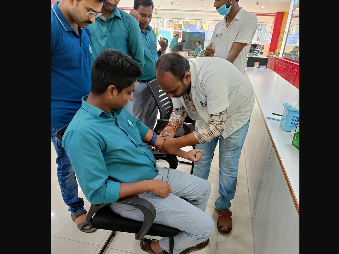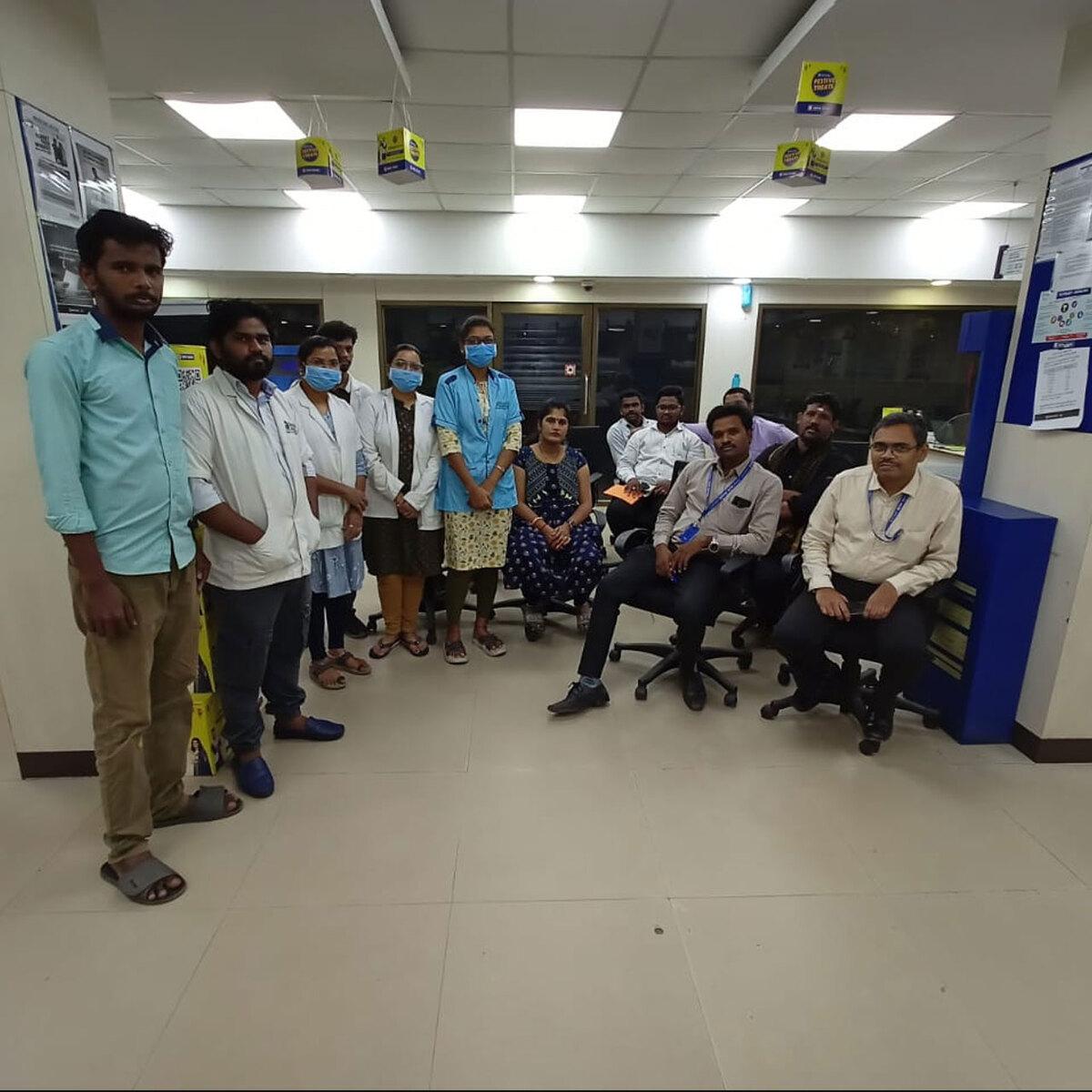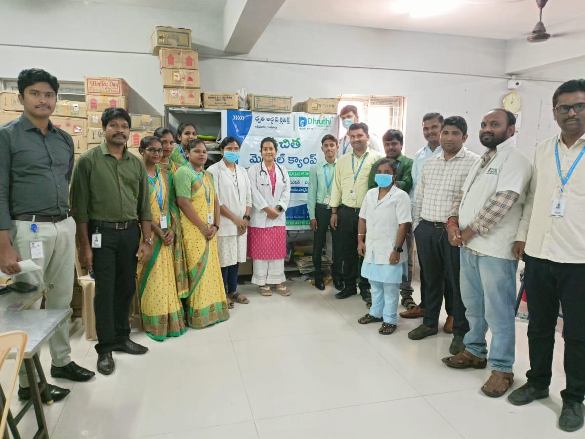 Today, ie.,12th Dec’23 Dhruthi Urban Clinics conducted Free Medical Camp at HDFC BANK lakshmipuram, Main Road, Guntur. In this camp BP, RBS, CBP, Blood Grouping, Weight has been examined & made Dental Screening also to all the Bank Staff Members.