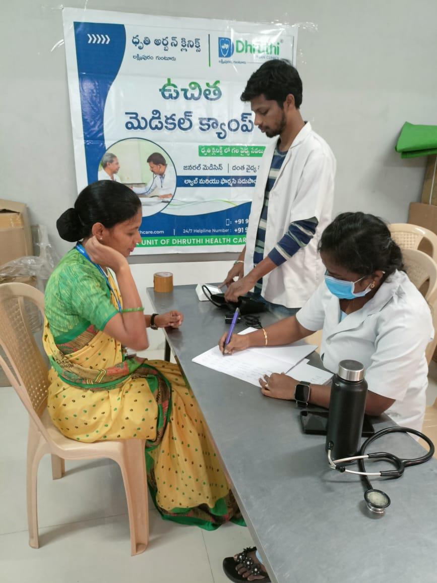 Today i.e.,3rd April' 24 (Wednesday) Dhruthi Clinics conducted Free Medical Camp at StyleUp Lakshmipuram, Guntur. In this camp Weight, BP, RBS, CBP has been examined to all the Staff Members.