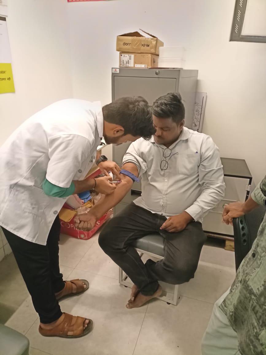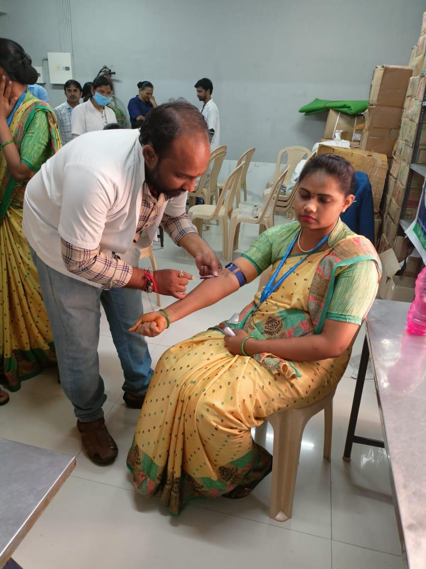 Today ie.,16th Dec'23 (Saturday) Dhruthi Urban Clinics conducted Free Medical Camp at Lalitha Jewelers lakshmipuram, Guntur. In this camp BP, RBS, CBP, Blood Grouping, Weight has been examined and made Dental Screening also for total staff members